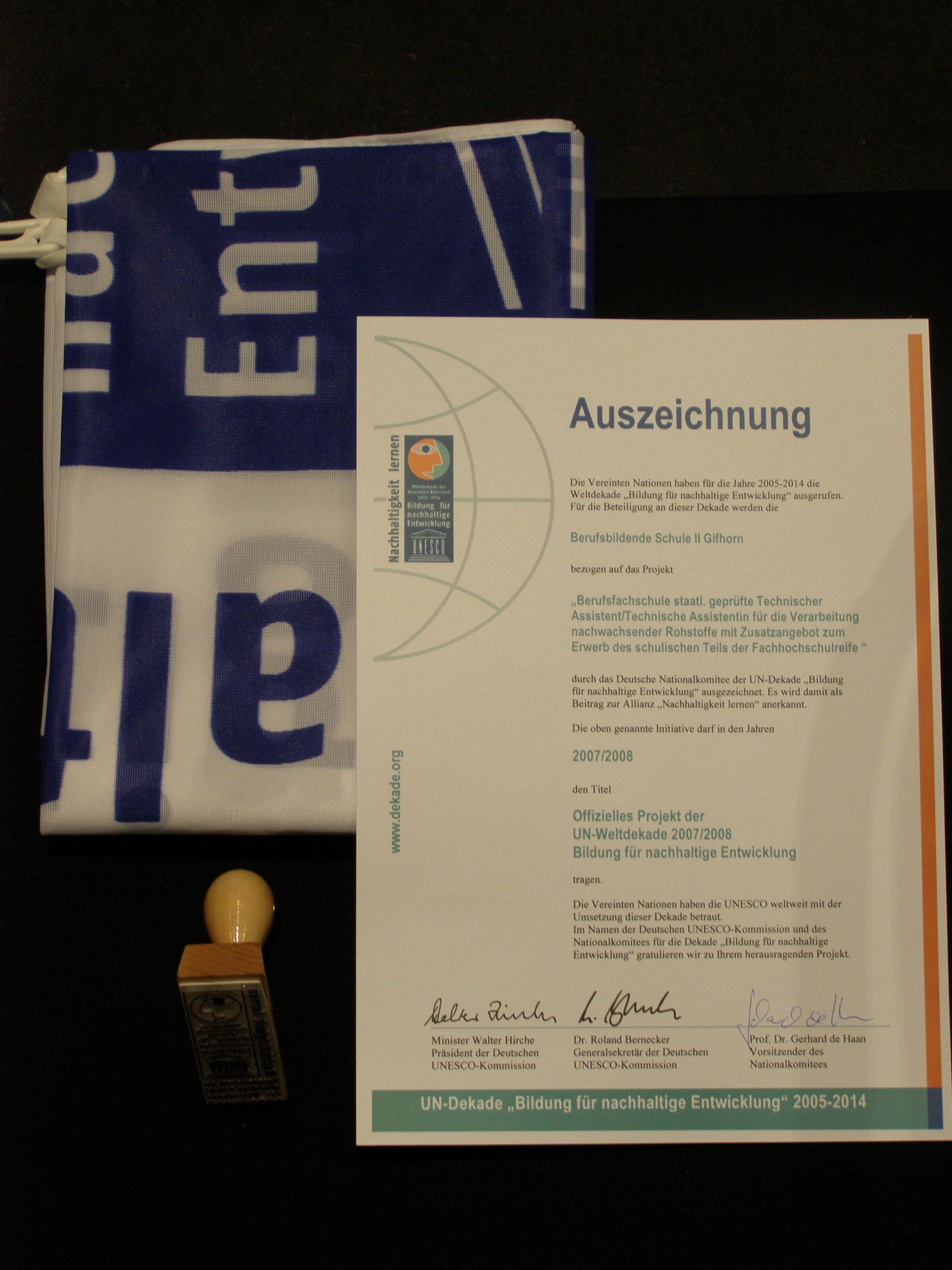 UN-Dekade Projekt: Die Ausbildung ist als Projekt der UNESCO im Rahmen der Nachhaltigkeitsstrategie für 2007-08 und 2009-10 anerkannt. Für das Jahr 2011-12 wurde ein Weiterführungsantrag mit dem Schwerpunkt Kooperation mit der Lerherausbildung gestellt.