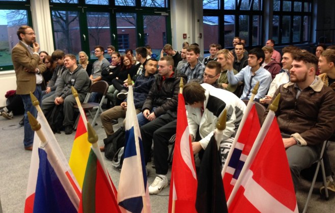An dieser Veranstaltung nahmen 51 Schüler und Schülerinnen teil. Es waren die Klassen Maler und Lackierer/Malerin und Lackiererin mit 17 Schülern und Schülerinnen aus dem drittem Ausbildungsjahr, 21 Schüler und Schülerinnen der Berufsfachschule Holztechnik und 13 Schüler und Schülerinnen der zweijährigen Berufsfachschule „Technischer Assistent für nachwachsende Rohstoffe/ Technische Assistentin für nachwachsende Rohstoffe“ (NawaRos) anwesend. Hiervon haben sechs Personen der Klasse Maler und Lackierer/Malerin und Lackiererin ein schulisches Europapraktikum in Dänemark absolviert und alle Schüler und Schülerinnen der Berufsfachschule „NawaRo“ eines in Österreich. Somit lagen bei vielen Beteiligten direkte Erfahrungen mit dem Thema Europa vor. Bei den übrigen indirekt durch die Erfahrungsberichte der Mitschüler und –schülerinnen sowie unterrichtliche Inhalte.