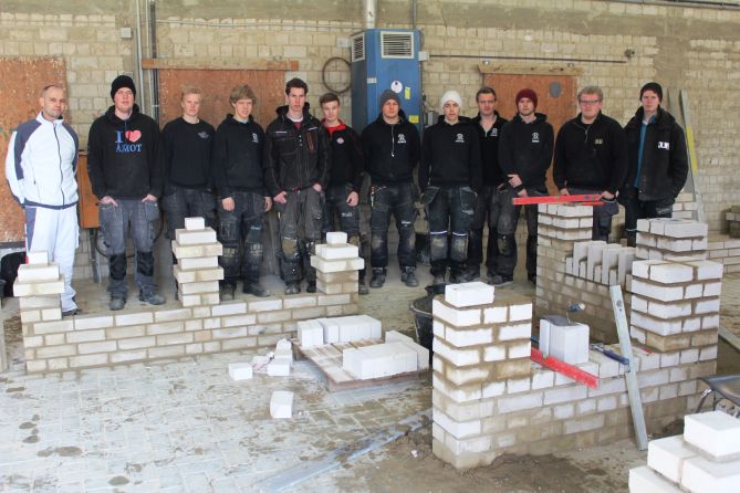 Zwölf Schüler erlernen das Maurerhandwerk und erhalten an den BBS II einen Workshop. Dieser wird von einem deutschen Lehrer, Chris Feßling, aus dem Team der Bautechnik durchgeführt und beinhaltet